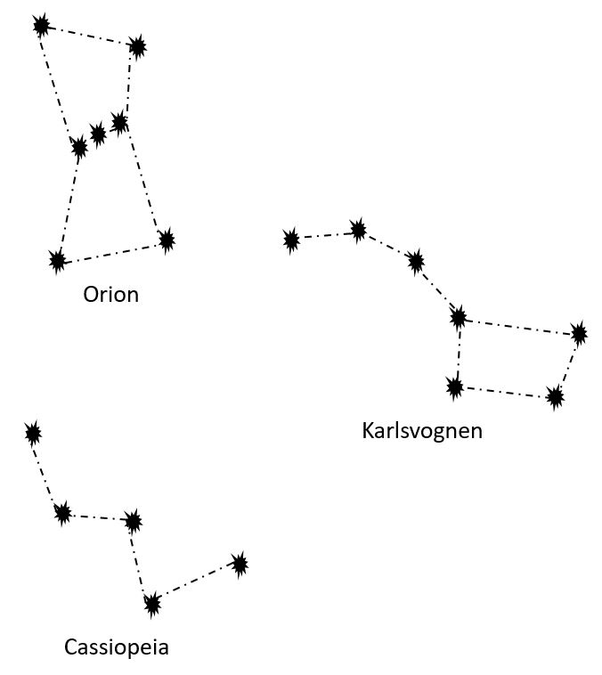 Lav en figur af en eller flere af de tre stjernebilleder Karlsvognen, Cassiopeia eller Orion.